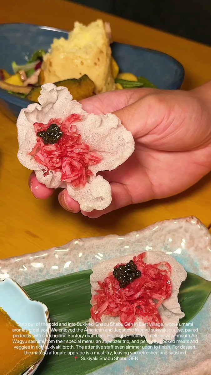 Sukiyaki Shabu Shabu GEN Nestled in the heart of the Lower East Side, Sukiyaki Shabu Shabu GEN offers an unforgettable dining experience that blends tradition with culinary excellence. As soon as you step in, you're greeted with warm smiles and a genuine sense of hospitality that sets the tone for the evening. The star of the show here is their sukiyaki and shabu shabu hot pot, where thinly sliced beef and fresh vegetables are delicately swished in a simmering seaweed broth. The name "Shabu Shabu" itself mimics the sound of ingredients gently swirling in the pot—a delightful touch that adds to the charm of the meal. We opted to cook our beef medium rare, a recommendation that turned out to be spot on. Each bite was a revelation, with flavors unfolding in layers and textures that delighted the palate. The accompanying ponzu and creamy sesame sauces provided the perfect balance of tanginess and richness, elevating the experience to a symphony of taste. What truly sets Sukiyaki Shabu Shabu GEN apart is their attentive and personal service. The staff not only guided us through the menu but also shared stories about the origins of each dish, adding depth to our dining experience. It's clear that they take pride in delivering not just a meal, but a journey through Japanese culinary traditions. Whether you're a seasoned connoisseur of Japanese cuisine or a newcomer eager to explore, Sukiyaki Shabu Shabu GEN promises an evening of warmth, flavor, and genuine hospitality. Make sure to visit soon for a taste of Japan right here in NYC! #ShabuShabu #JapaneseCuisine #LowerEastSideEats #FoodieAdventure