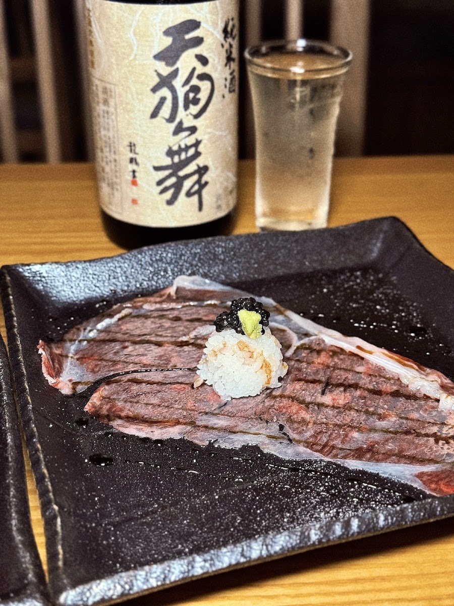 This place is so cute. I randomly stopped in for a drink while I waited to meet my friend. Was pleasantly surprised at how beautiful the interior is. Sake was so light and perfect and the Japanese wagyu sushi left me wanting more. Service was great and the way gave me complimentary mochi icecream. I’ll def return in the near future to have a proper meal.